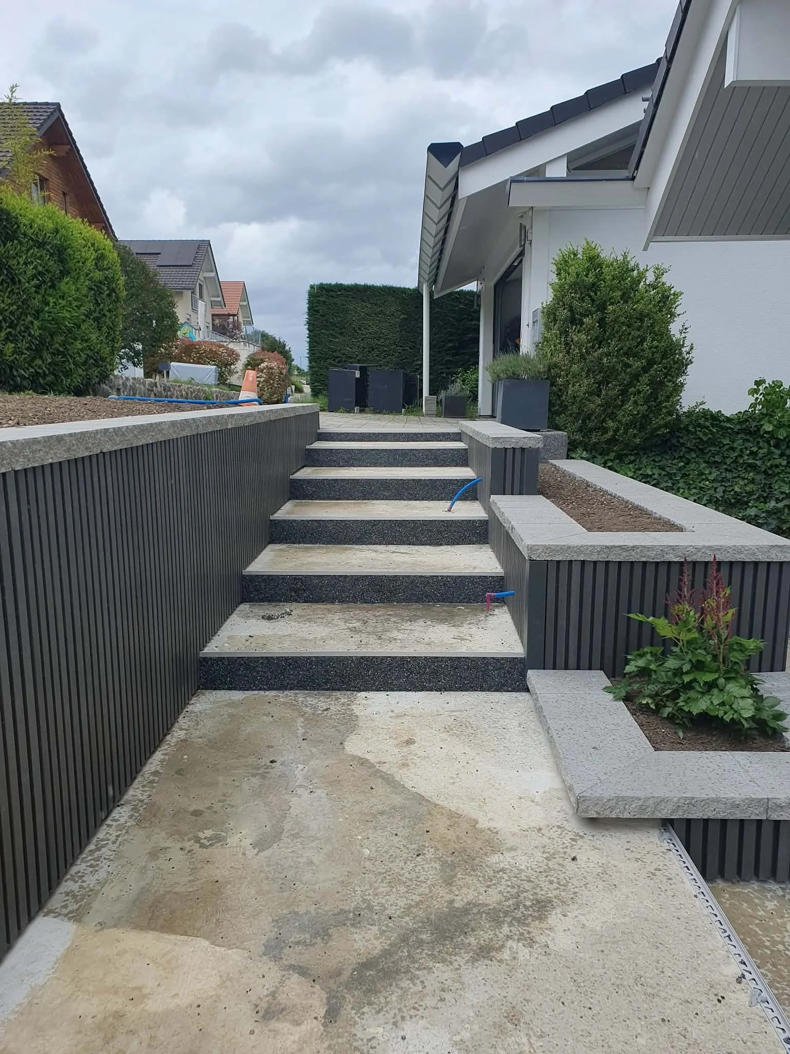Chez Joanne Paysage, nous réalisons la conception et la construction d’escaliers extérieurs en maçonnerie adaptés à vos espaces, qu’il s’agisse d’un accès de jardin, d’une entrée ou d’une terrasse. Solides, durables et esthétiques, nos escaliers en béton, pierre ou matériaux personnalisés sont pensés pour s’intégrer harmonieusement à votre aménagement paysager et répondre à vos besoins fonctionnels. Faire appel à un professionnel garantit une installation sûre, conforme et durable. 📍 Paysagiste & maçon à Fontainebleau et partout en Seine et Marne – devis gratuit et solutions sur mesure.